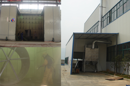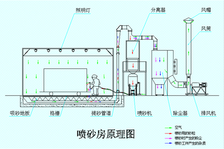 公司與某公司合作的走入式噴砂房順利完工,通過驗(yàn)收并交付使用,此噴砂房又叫噴丸房;主要技術(shù):1、室體除塵器2、分選除塵器3、砂(丸)料斗4
