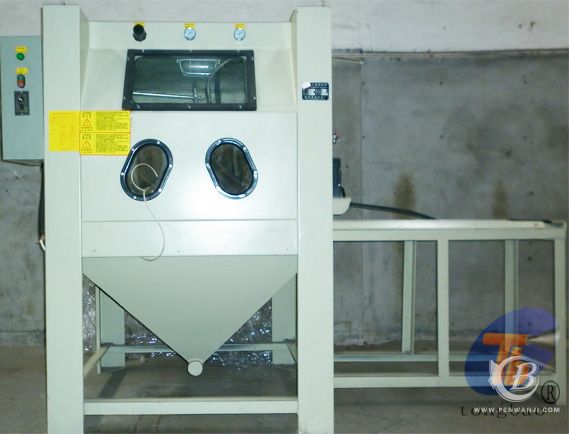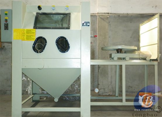 本公司研發(fā)生產(chǎn)完成TB-1212連體轉(zhuǎn)臺(tái)式噴砂機(jī),此設(shè)備經(jīng)過(guò)不斷改裝完善,現(xiàn)已生產(chǎn)完成投入使用;采用標(biāo)準(zhǔn)干式噴砂機(jī)工作原理