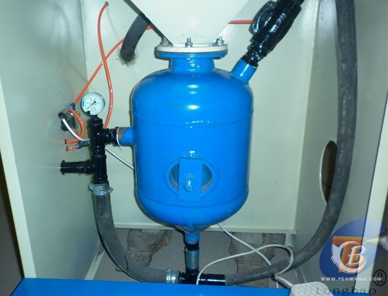 由客戶采購(gòu)的TB-7660P環(huán)保型壓力壓送式噴砂機(jī)已調(diào)試驗(yàn)收通過,包裝完成,貨物將于今日下午發(fā)至目的地,本機(jī)采用壓力式直接加速噴射砂材
