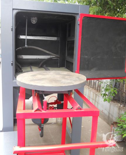 推車(chē)轉(zhuǎn)臺(tái)保壓式噴砂機(jī)整機(jī)不同角度展示