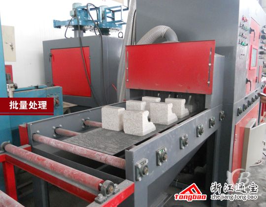 杭州通寶機(jī)械:某公司定購(gòu)的非標(biāo)型石材輥道通過(guò)式噴砂機(jī)目前已交付使用;設(shè)備采用輥道滾軸式傳輸原理,機(jī)身單軸配置串聯(lián)式獨(dú)立鏈條齒輪,運(yùn)轉(zhuǎn)更平穩(wěn)。工作艙內(nèi)部采用10把高效能噴槍,自動(dòng)搖擺式噴砂作業(yè),處理更全面,同時(shí)體現(xiàn)了“升級(jí)表面 輕松擁有”的口號(hào)。