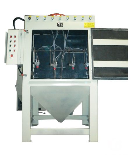 特點: 1,本系列采用砂水混合噴砂,使加工表面更加細膩,磨料消耗少。。其噴槍既可以固定也可手持操作,輕便靈活。 2,本系列機可以在所有干式噴砂機(如滾筒機式,轉(zhuǎn)臺式,輸送式等)上加裝砂泵系列,設(shè)計制造同類型液體噴砂機。 3,本系列機可根據(jù)客戶要求設(shè)計制造自動化,半自動化液體噴砂機。 技術(shù)參數(shù)