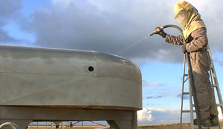 利用氣力回收噴砂房對火車表面進(jìn)行外型處理 工作現(xiàn)場示意圖 |
