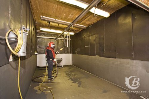 機(jī)械回收式噴砂房操作現(xiàn)場示意圖(鼠標(biāo)左鍵拉動可放大圖片 ) |